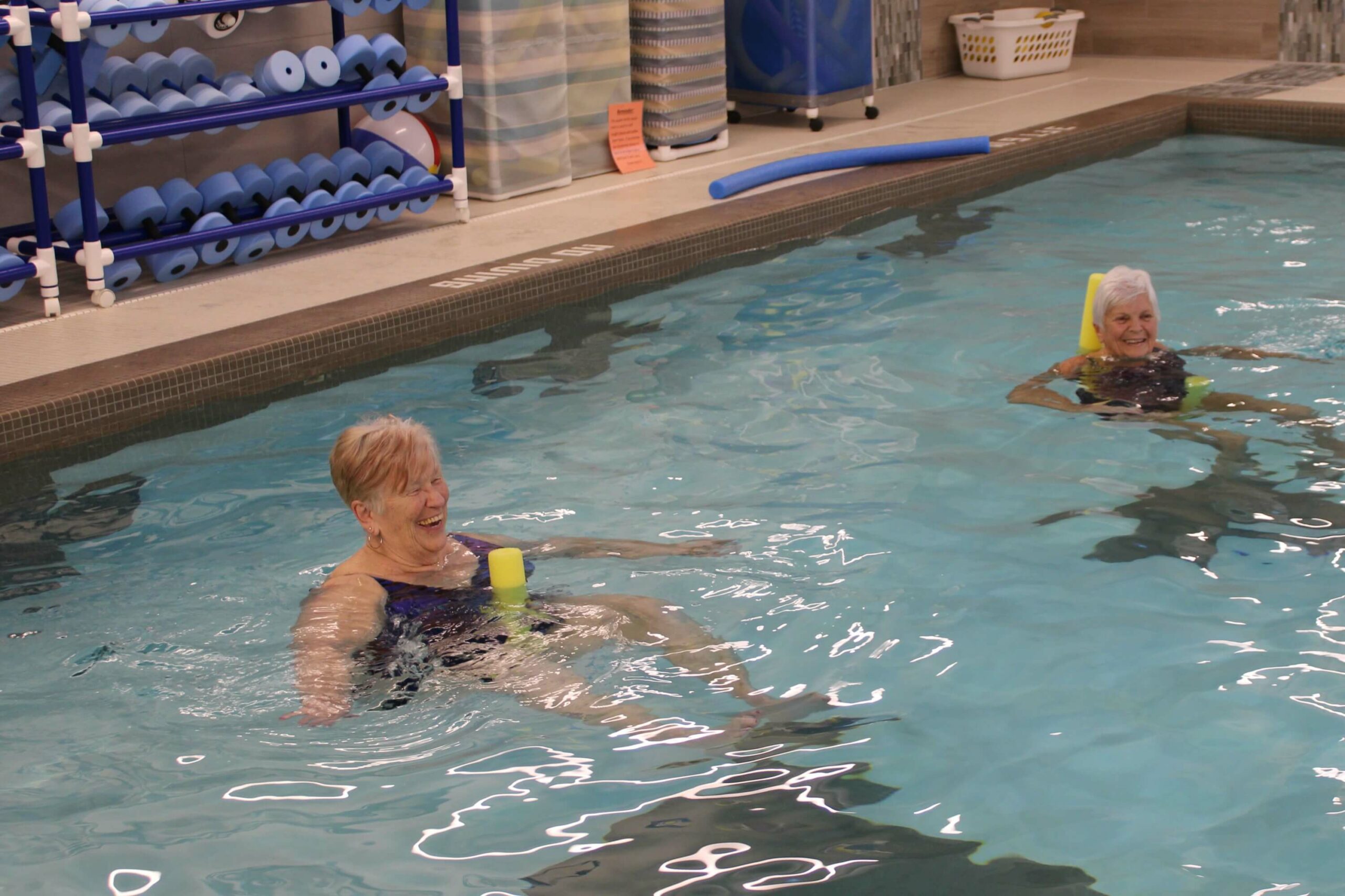 Studies show Aquatic Therapy can be beneficial to seniors with a variety of conditions, including Dementia, chronic pain & arthritis, and those who are post-stroke. Aquatic Therapy provides benefits such as improved balance & coordination, increased range of motion, and improved muscle strength—all things that are incredibly important for seniors. In addition to the numerous health benefits, there was another positive side effect: all of the smiles! As you can see from the photos, our residents had a wonderful time participating in this event.