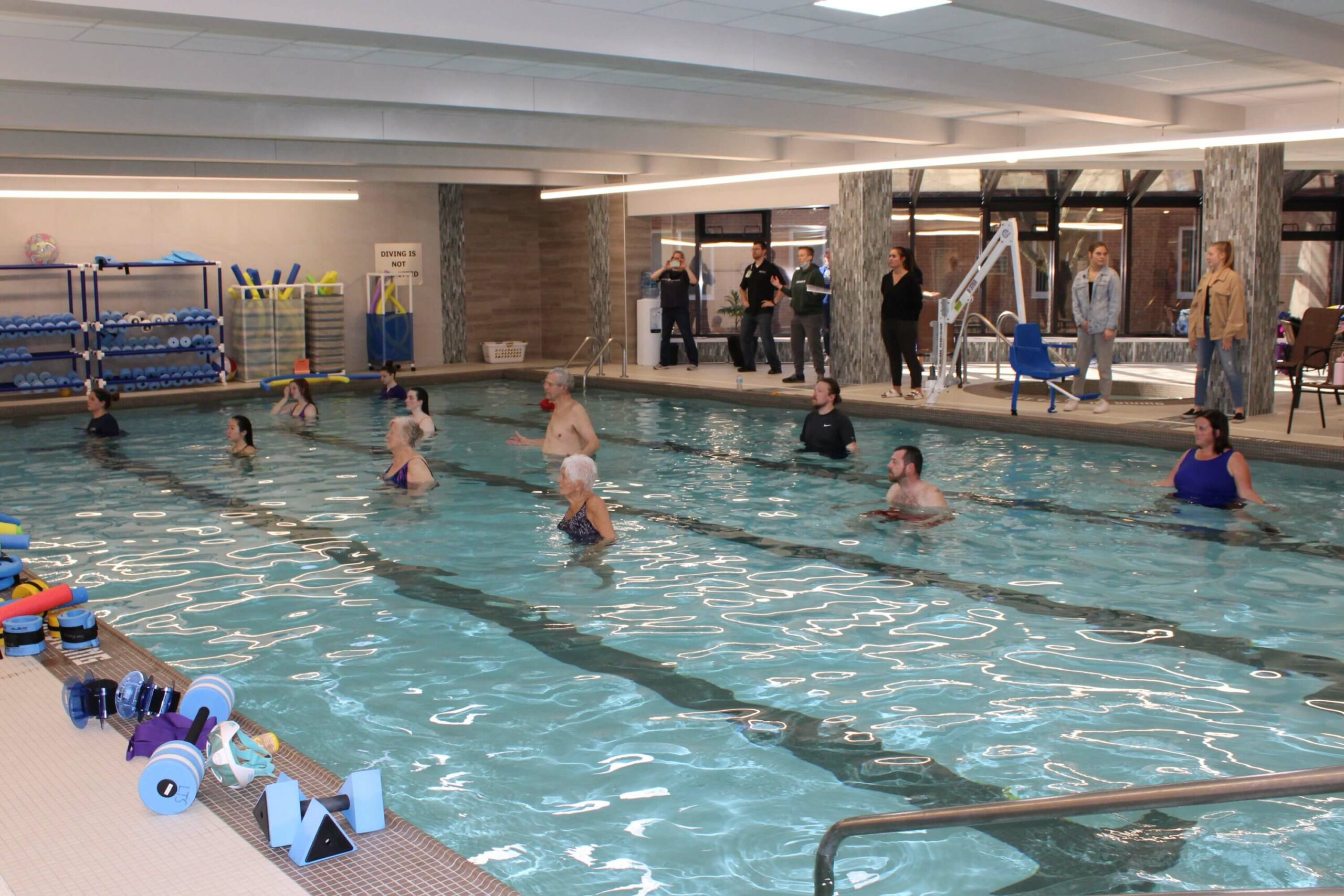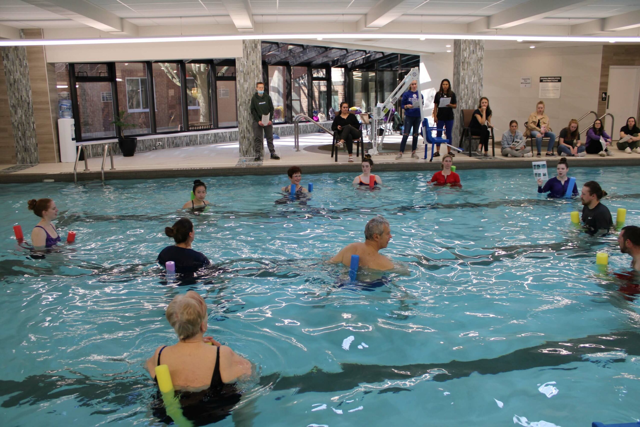 Our Life Enrichment Director at Sunset Manor & Villages, Nick Wahl, is also an adjunct professor at GVSU in their Recreational Therapy department. Nick and his co-professor thought collaboration between Sunset and LTS would be a great way for their students to experience firsthand the effectiveness of aquatic therapy for seniors.