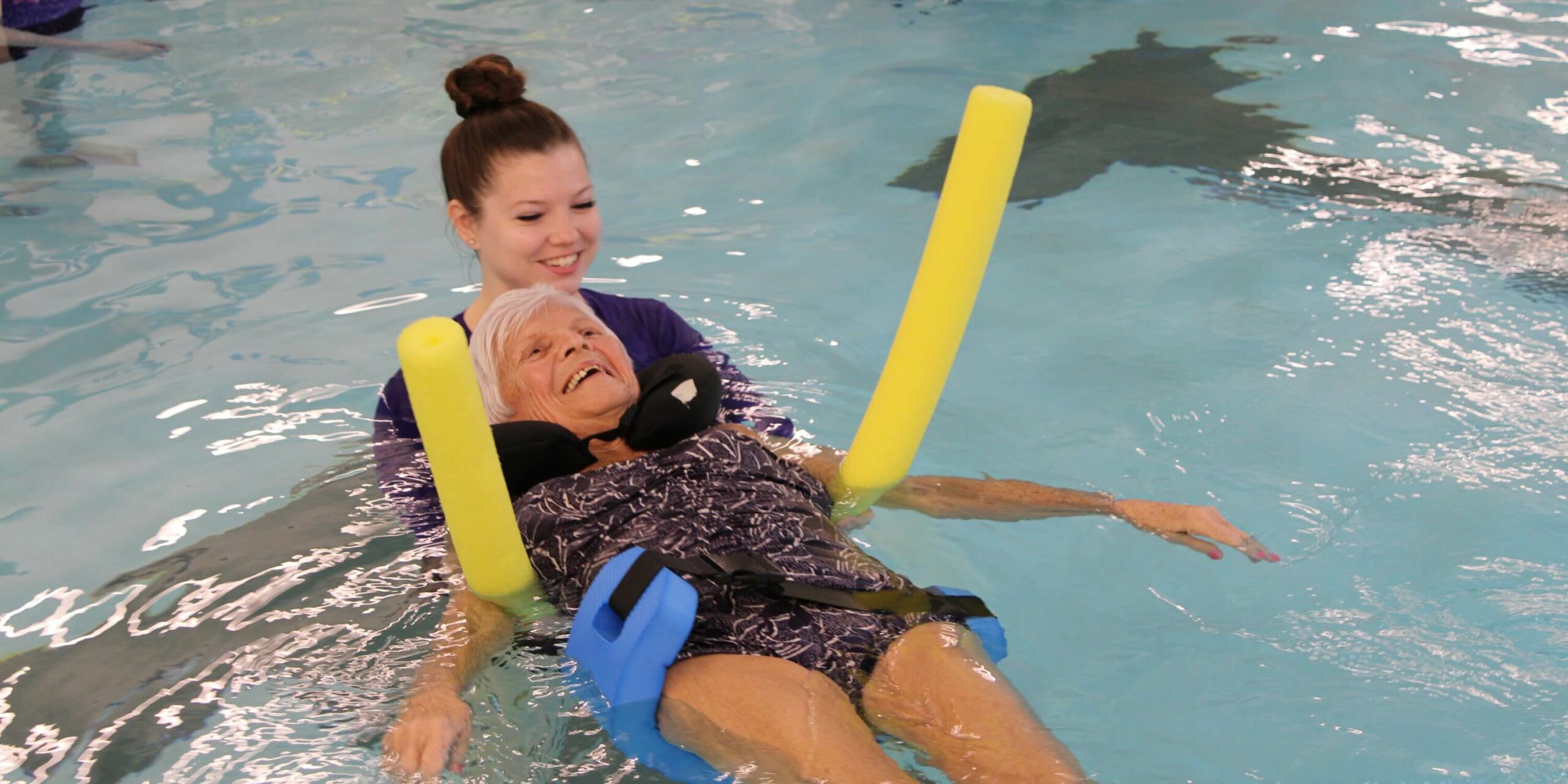 Sunset enjoys collaborating with other nonprofits, especially when it benefits the people and communities we serve. We have an ongoing partnership with Grand Valley State University, specifically with their Recreational Therapy program. Recently, we had the opportunity to work with a company called Life Therapeutic Solutions in partnership with GVSU to offer our residents a specialized pool therapy class.