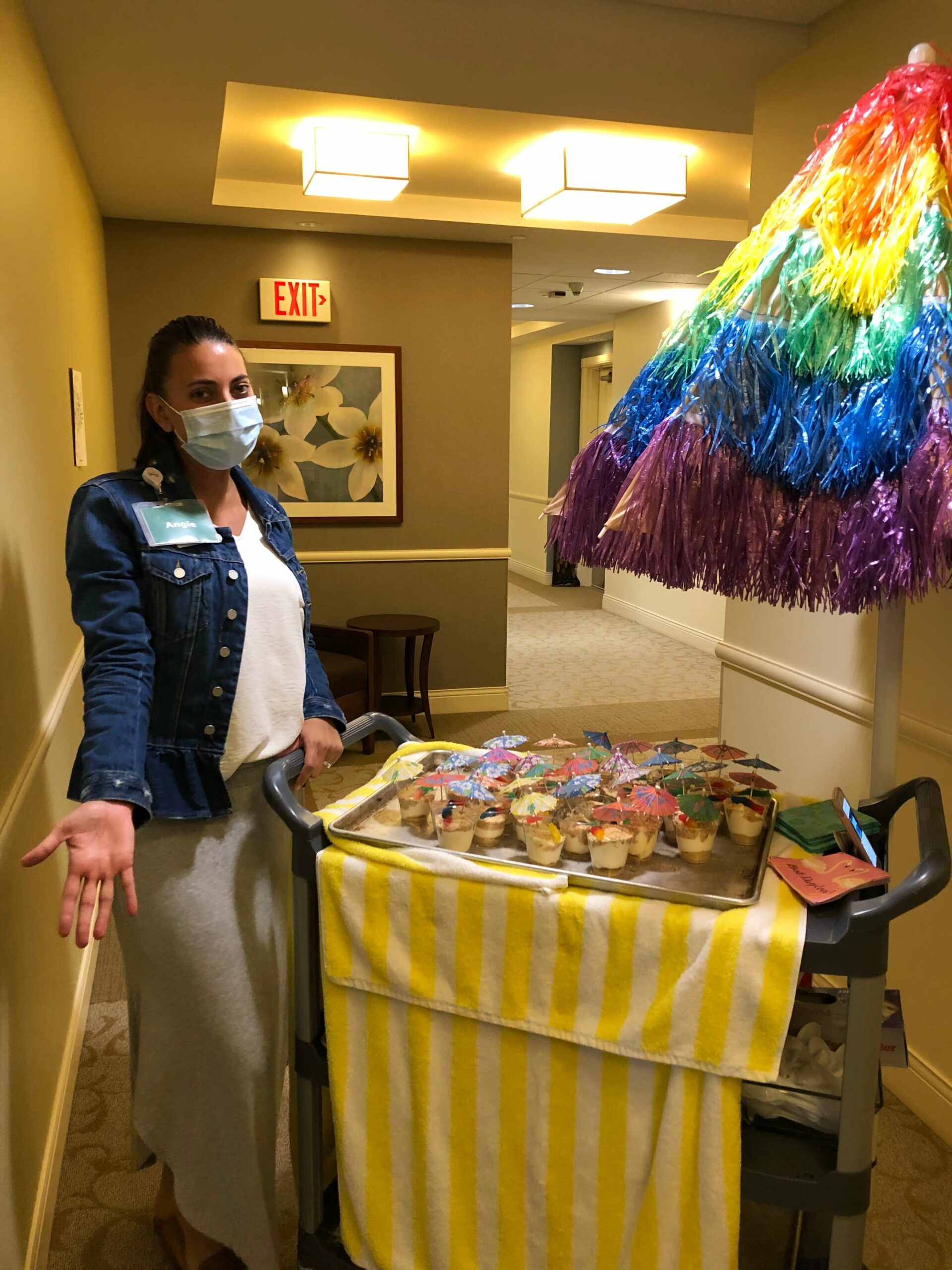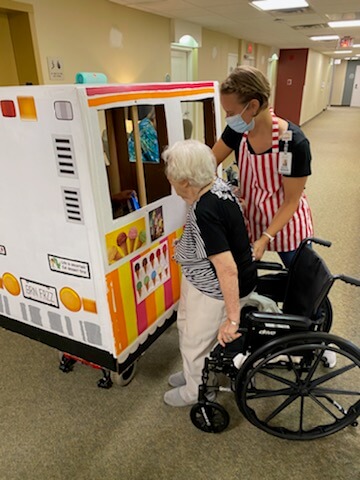 Our Life Enrichment teams came up with a plethora of creative ideas for residents to connect and find joy. A highlight of everyone’s day soon became the goodies delivered door-to-door! Many deliveries arrived with a special theme or included a fun delivery method. Residents received treats like ballpark hotdogs (with ballpark music playing, of course), a cabana beach day treat, and ice cream novelties from a hand-crafted ice cream truck!