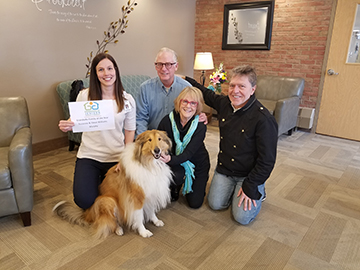 Each year, the City of Grandville selects a Citizen of the Year, and 2018 was the first time this honor was bestowed, in part, on a four-legged neighbor when the Williams family, including Murphy, were selected. In a nomination letter, neighbors recount how Steve and Suzanne have been involved in Grandville’s environmental efforts and how they selflessly walk alongside many who need a helping hand — something Murphy has done his share of as Suzanne’s constant companion at Brookcrest.