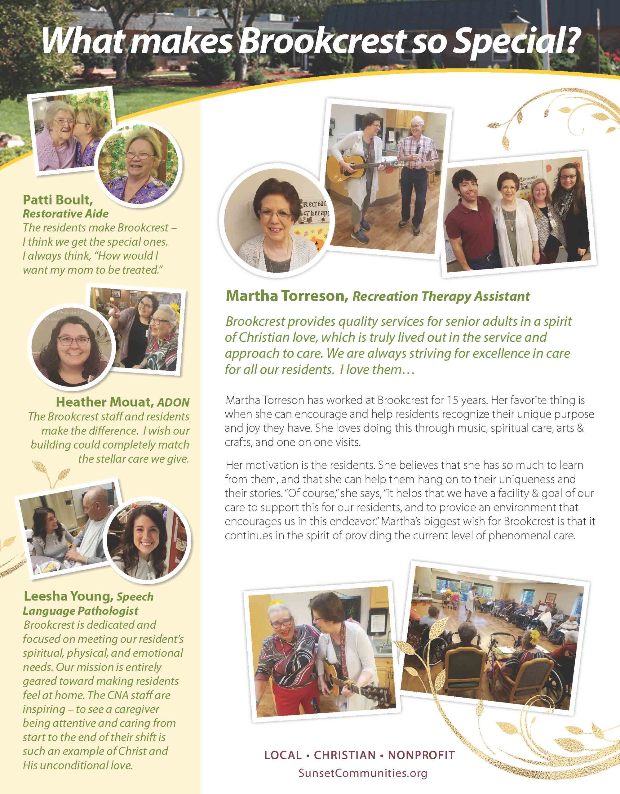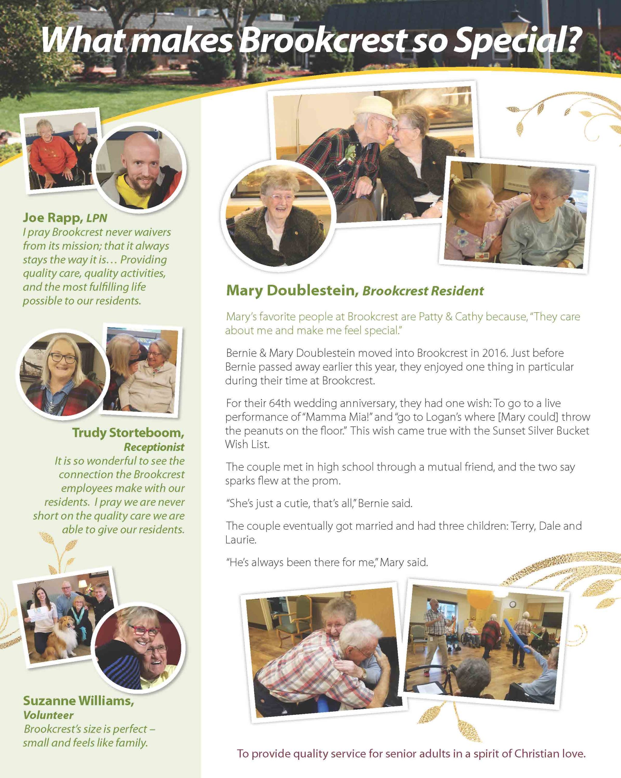 “They care about me and make me feel special.” –Mary Doublestein, Brookcrest Resident